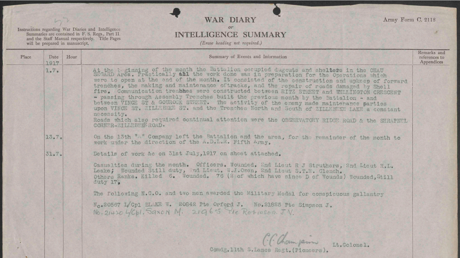 He arrived in Rouen on the 29th August 1916, and at some point was transferred into the 11th Battalion of the South Lancashire Regiment. With this Battalion on the 14th July 1917 in Flanders, he took a gunshot to the back and died the same day of his wounds. He was 34.